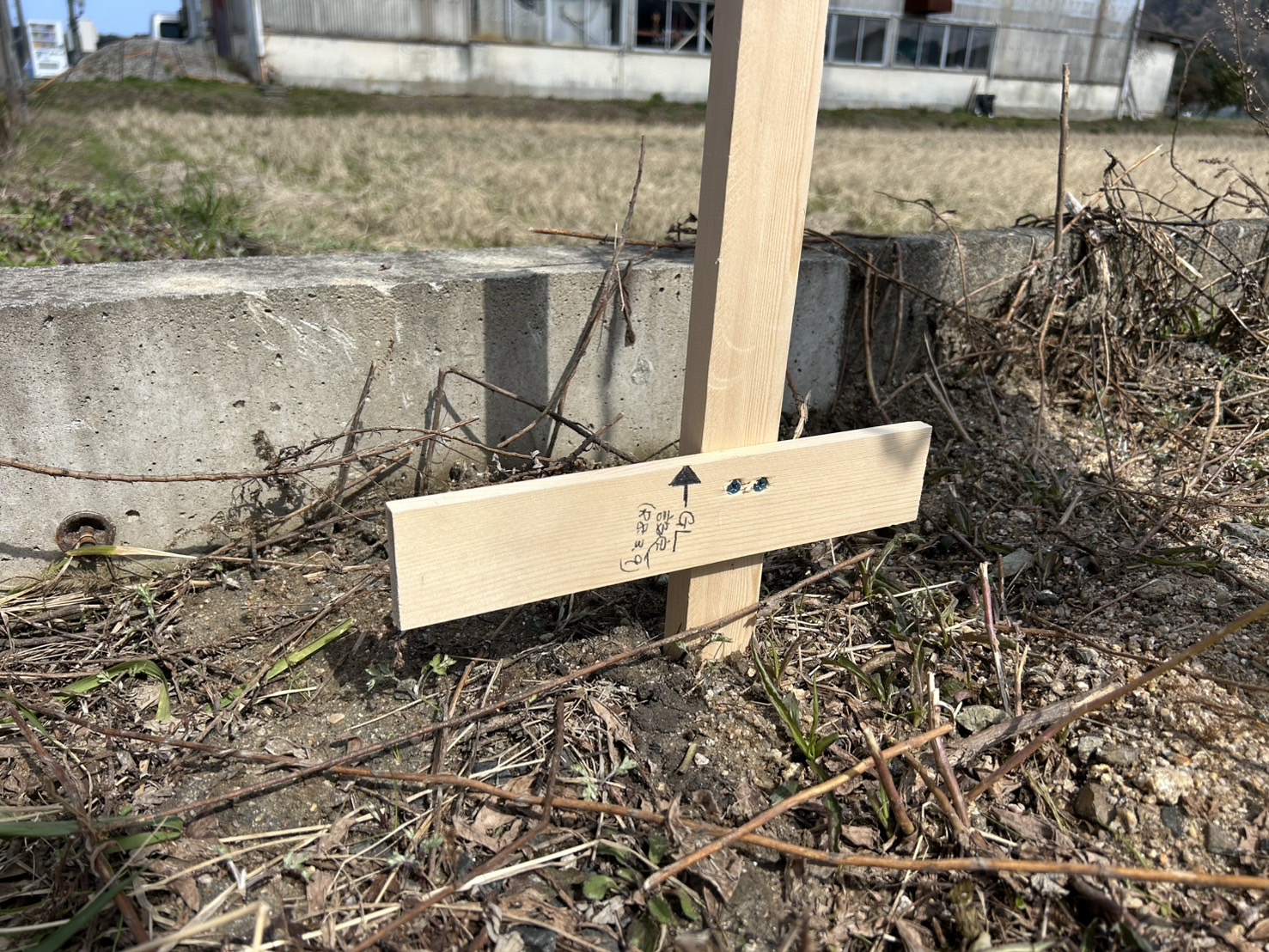 基礎工事にかかる前に 建物の正確な位置や高さ 水平ラインを示すために設置する仮設の目印